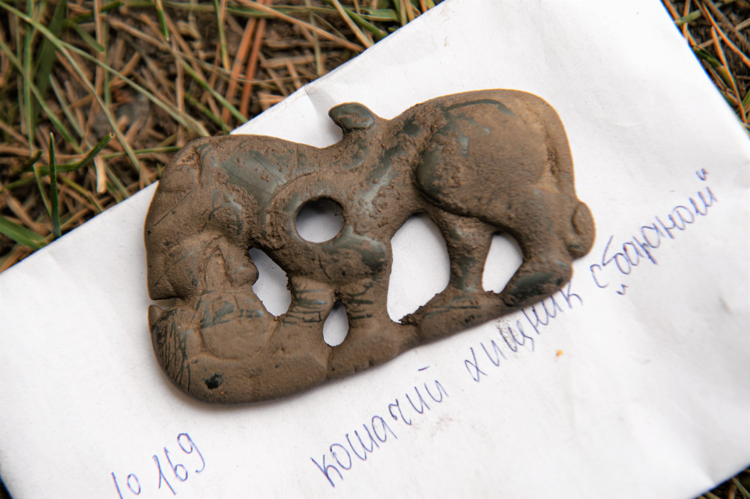 Кроме того, нашли куски керамики, сделанные в древние времена, и один с необычным орнаментом — изображением уточки. Также нашли много костей, скорее всего, лошадиных.