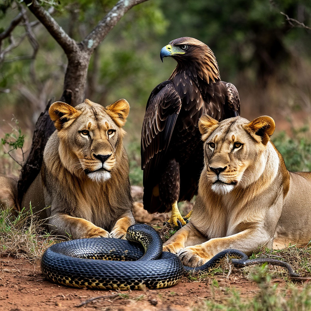Орёл перехитрил чёрную мамбу и львиц в захватывающей битве за жизнь