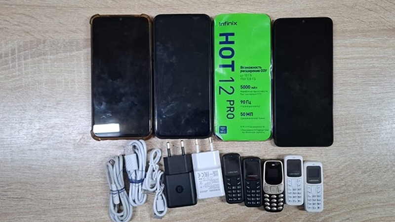 Во время обыска были найдены три пакета, спрятанные внутри колонии. Было обнаружено девять мобильных телефонов, а также комплект аксессуаров: зарядные устройства и соединительные шнуры.