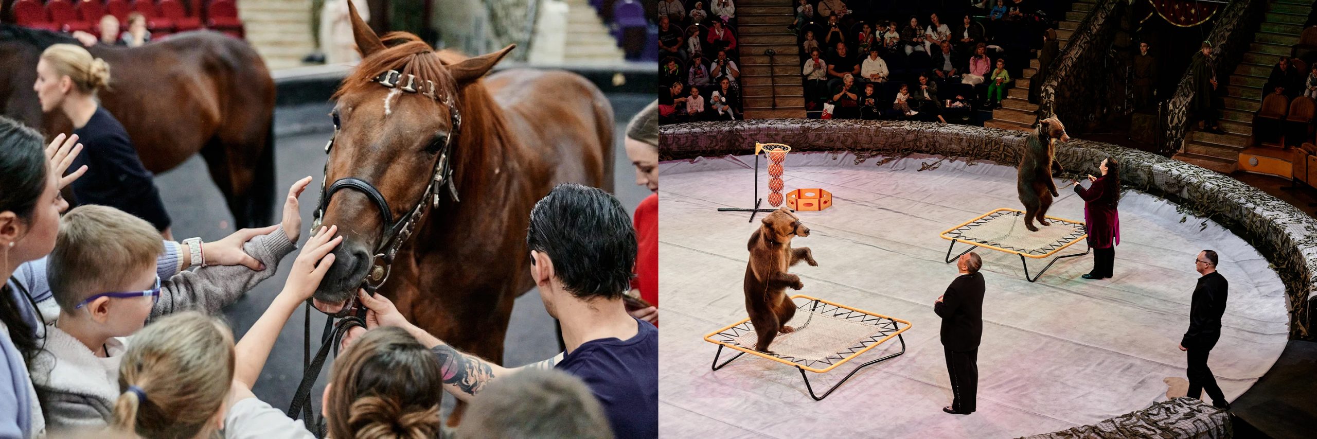 Помимо просмотра представления для ребят была организована тактильная экскурсия, ведущей которой выступила канатоходка Жанна Краснова. Дети смогли не только увидеть, но и погладить замечательных дрессированных собачек под руководством дрессировщицы Надежды Чеботы, лошадей породы орловские рысаки и потрогать наощупь реквизит, с которым артисты выступают на манеже.