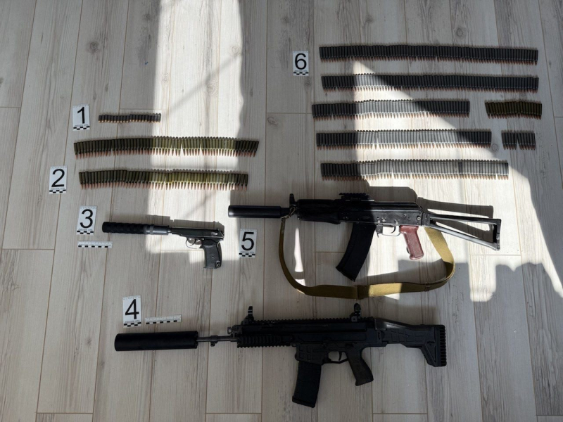 При обследовании его жилища оперативники выявили значительный арсенал: пистолет Макарова с глушителем, автомат Калашникова укороченной модификации АКС-74У с глушителем и винтовку чешского производства CZ BREN с аналогичным приспособлением. Дополнительно обнаружено значительное количество боеприпасов различного калибра общей численностью около 500 штук.