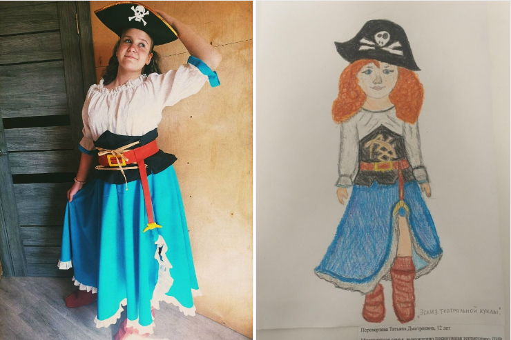 - Если эскиз нам действительно понравился, то пьесу мы дорабатываем, включая сцены с данным персонажем. Или добавляем в спектакль театральный интерактив: он даёт возможность изготовить большое количество реквизита по детским работам, - объясняет Юлия Антонова. - Например, в этом году нам нужен был всего один попугай, а рисунков было не менее двадцати. Мы подумали и решили включить в сюжет игру со зрителями: ребята помогали найти и вернуть в гнездо потерявшихся попугаев. Так нами оказались востребованы целых 12 детских работ. То же самое было с кораблями: в начале спектакля их проплыла целая флотилия!