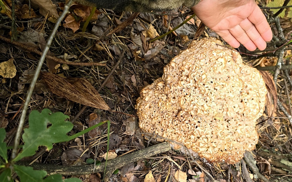 Спарассис курчавый (или «боровая капуста») поражает своими размерами: отдельные экземпляры достигают веса до десяти килограммов! Из-за своего необычного внешнего вида этот гриб получил прозвище «грибное счастье» или «курчавый дрягель».