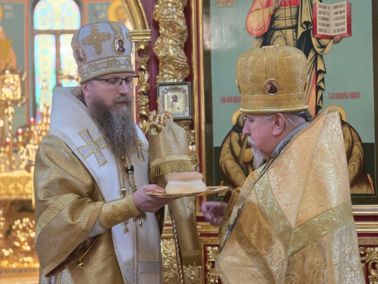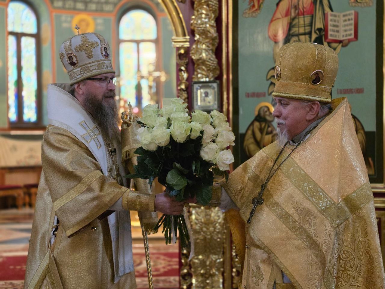 По завершении литургии епископ Игнатий поздравил юбиляра, вручив ему заздравную просфору и букет цветов в знак особого почтения. Праздничный хор собора исполнил многолетие.
