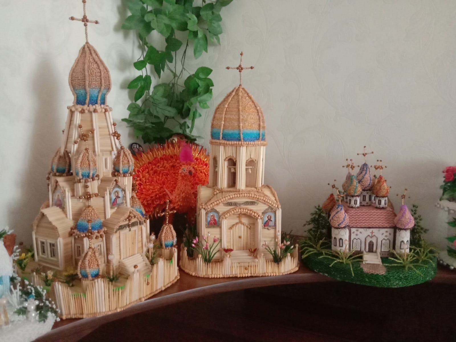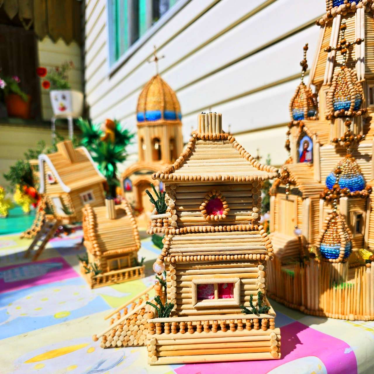 От икон, вышитых бисером, и теплых валяных игрушек она пришла к настоящему чуду инженерной мысли и духа. Сегодня вершина ее мастерства — филигранные храмы и уютные домики, построенные из… обычных деревянных шпажек для шашлыка.