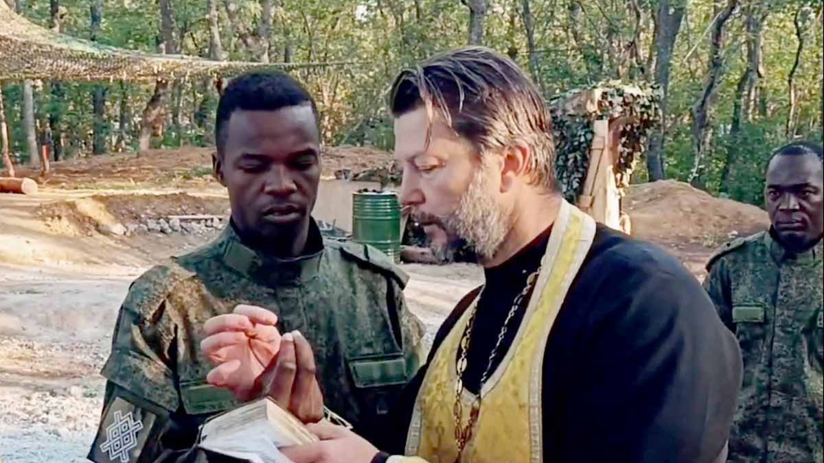Православный рязанский священник окрестил бойца-добровольца из Кении в зоне специальной военной операции