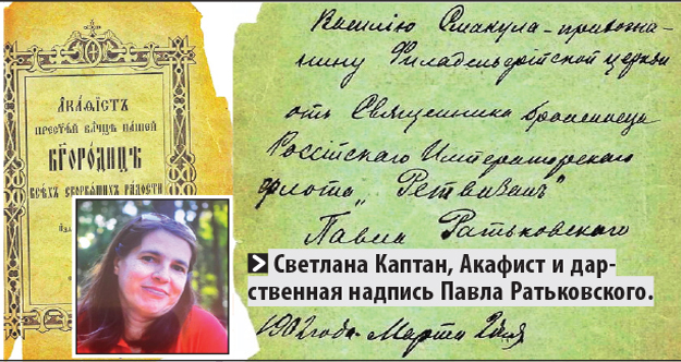 Подарки эти были явно неслучайными, нас объединяющими, и что особо радует, по сей день они хранятся в соборе и в семье внучки Васили Смакулы Анастасии БРОДЗИК. Об этом я узнал из письма мне Светланы КАПТАН из Калуги – родственницы Ратьковского (по линии мужа), собиравшей по крупицам историю семьи, а сама Светлана – из послания Александра КОЗЛОВА – смотрителя музея Андреевского собора в Филадельфии в 2009 году: