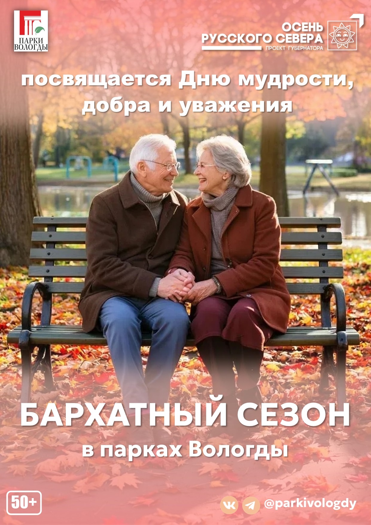 В парках Вологды во всю идет «Бархатный сезон» — серия мероприятий для мудрых, позитивных, активных, творческих и влюбленных в жизнь людей. К 11 октября многие события уже позади, но их эхо вдохновляет на новые встречи, и предстоящие обещают заряд энергии. Организаторы подчеркивают: осень — время ЗОЖ, творчества и ностальгии.