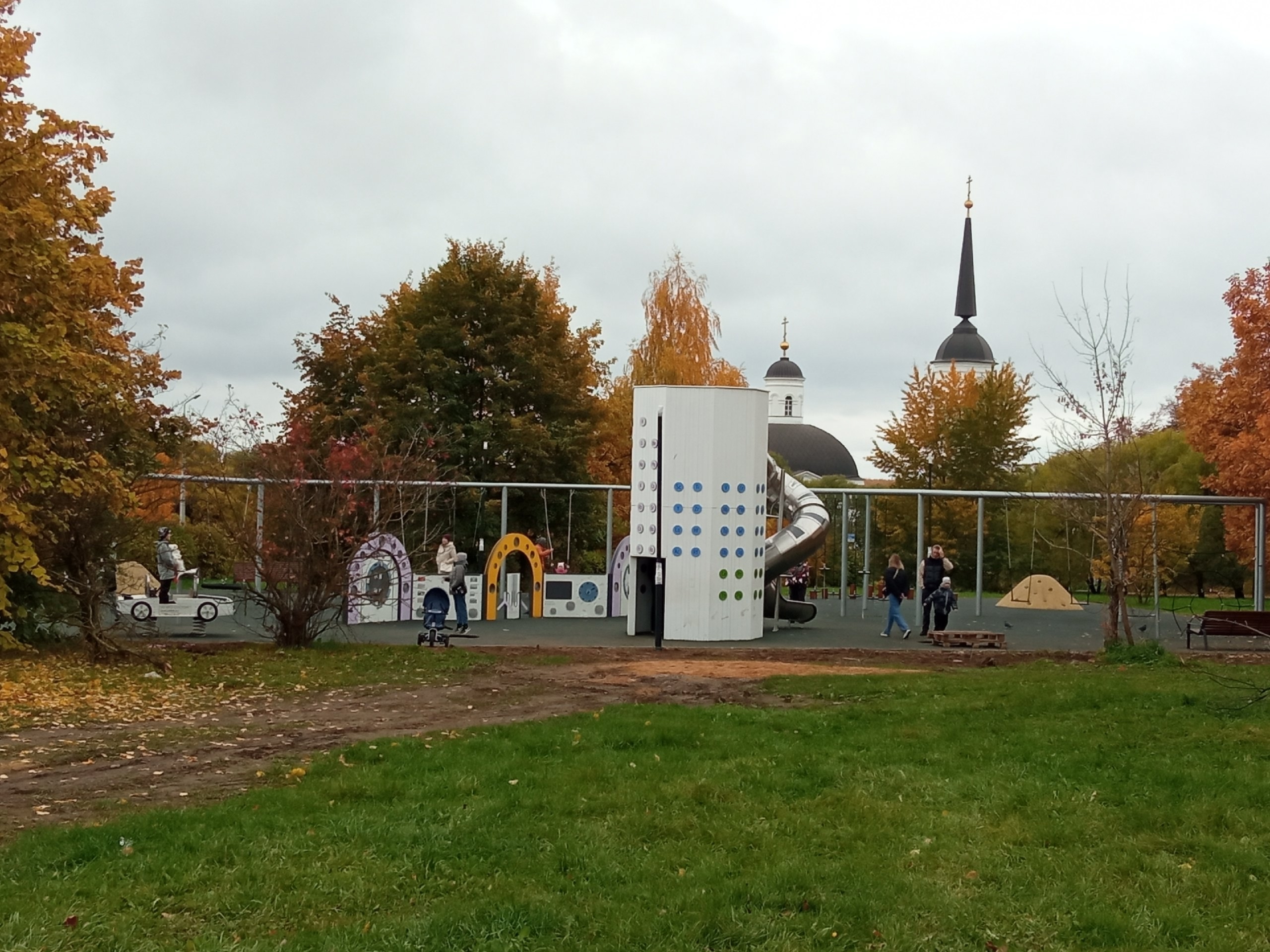 Однако жители отмечают недочеты: разъезженные газоны, остатки стройматериалов и поврежденные деревья портят впечатление. Фото, опубликованные в соцсетях, вызвали споры. Панорама площадки на фоне храма выглядит необычно: современный дизайн контрастирует с духовным обликом.