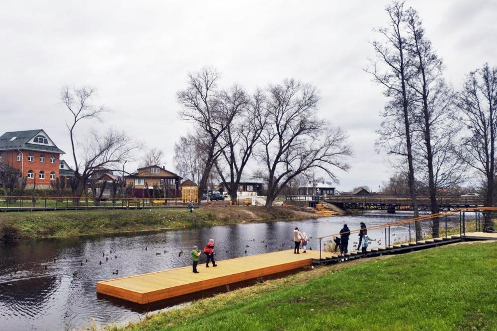 В рамках проекта на правом берегу Судогды сделаны дорожки из брусчатки, устроено освещение, установлены скамейки и качели, летняя сцена с подсветкой, организована игровая зона для детей, оборудован спуск к воде с пирсом для лодок и байдарок. Берега реки соединены мостом, который благодаря подсветке выглядит парящим над водой. На левом берегу Судогды от моста до улицы Красной проложена тропиночная сеть на сваях, установлена беседка с освещением, устроен плавучий плотик для отдыха и обновлена смотровая площадка. Вся территория набережной оборудована камерами видеонаблюдения. Гулять вдоль Судогды легко и приятно. Неторопливый ритм городка сохранен, и можно представить себе, как полтора века назад тут также размеренно шла жизнь провинциальной, но такой очаровательной Судогды.