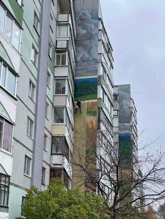 Но организаторы обещают: мурал вернется в первозданном виде. Часть фасада дома №17 утепляют, закрыв два пролета панелями — стандартная процедура для энергоэффективности.
