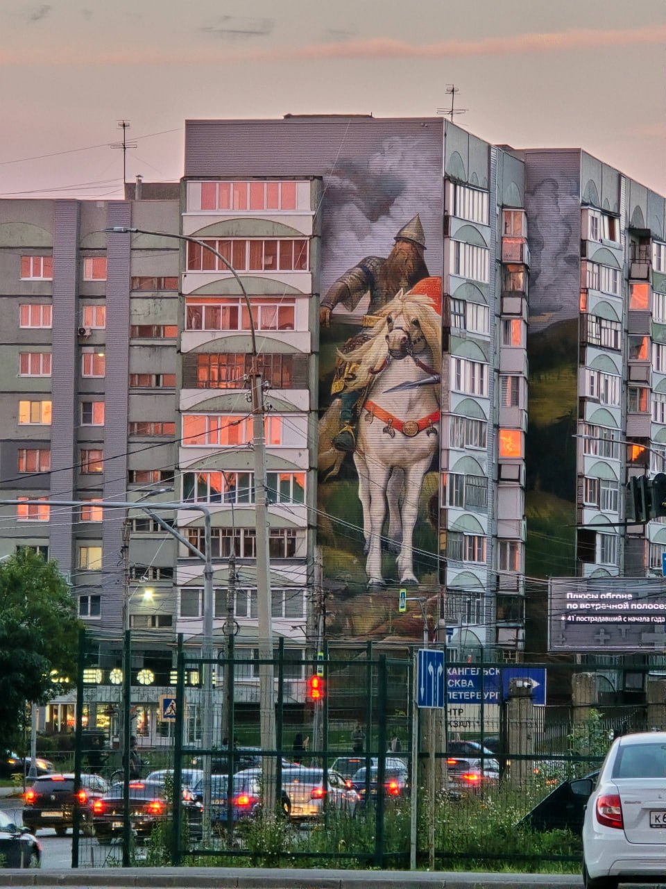 Триптих, вдохновленный картиной Виктора Васнецова, создал в конце августа вологжанин Олег Иванов, член Союза художников России. Три богатыря — Илья Муромец, Добрыня Никитич и Алёша Попович — символизируют силу русского духа. Фестиваль «Палисад» в 2025 году планировал 100 муралов, 80 уже готовы. Локации уже добавляют на «Яндекс.Карты» для туристов.
