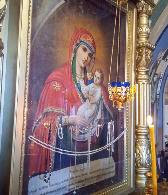 Еще одна считающаяся здесь чудотворной икона - «Богоматерь. Радуйся невесто неневестная». Автор – иконописец Юрий Кузнецов. Она увешана кольцами, цепочками, крестиками, украшениями, которые привозят верующие.