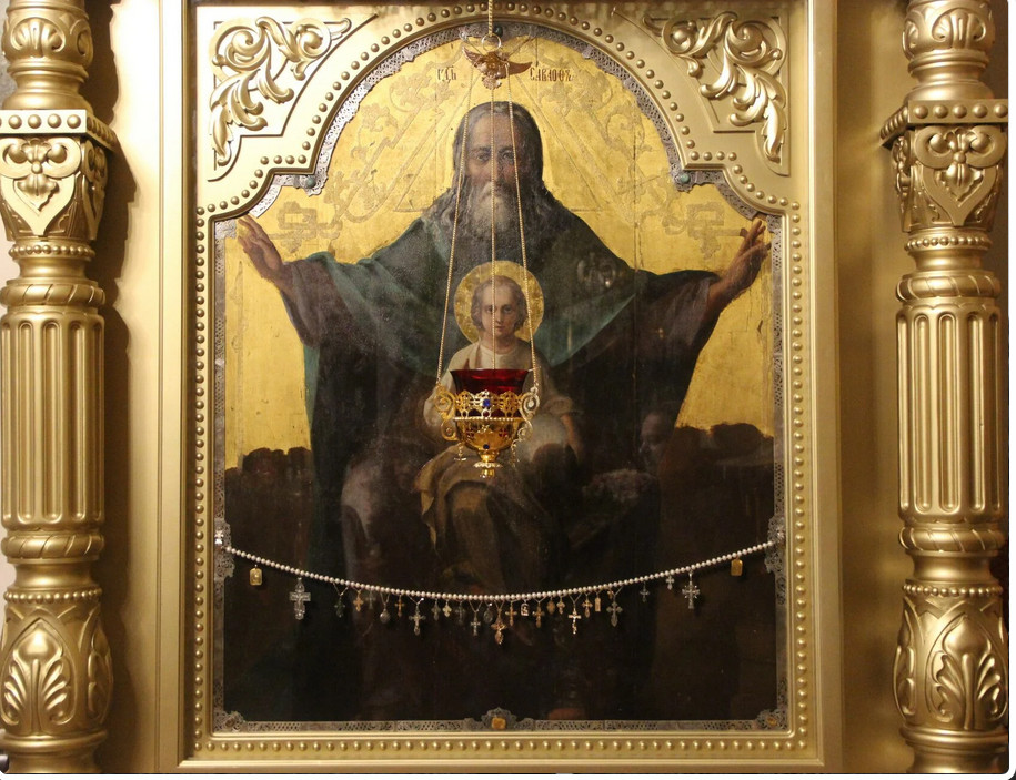 Упомянутая икона Господа Саваофа из покровской церкви считается уникальной. На изображены ней Бог-отец Саваоф и сидящий у него на коленях Бог-сын Иисус Христос, который держит шар - символ святого духа. Такие иконы встречаются редко, дело в том, что написаны они не по канонам.
