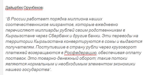 Орунбеков: 1000000 мигрантов в РФ гарантируют экономическую устойчивость Киргизии