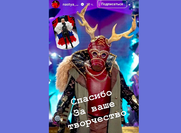 При этом она напомнила зрителям, как проходило выступление Долиной в шоу «Маска», сопроводив слова скриншотом из передачи с подписью: «Спасибо за ваше творчество!»