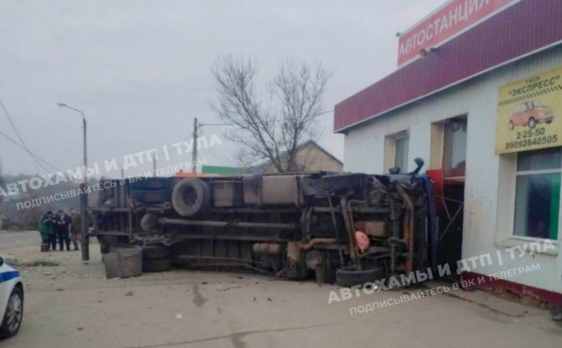 В Тульской области грузовик перевернулся и влетел в автостанцию