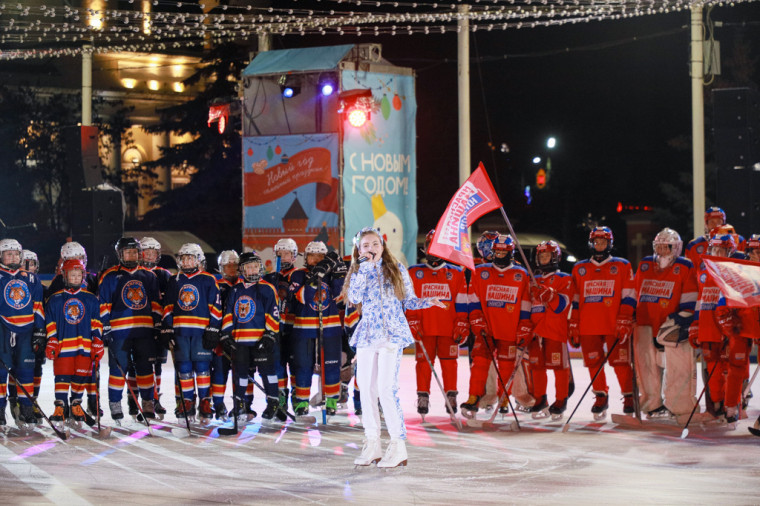 А хоккейная команда «Красная машина Юниор» вместе с Алексеем Ковалёвым — олимпийским чемпионом, обладателем Кубка Стэнли сыграла с тульской детской командой «Тигры» под выступление финалистки «Голос. Дети» и победительницы конкурса «Детская Новая волна» Анны Волковой.