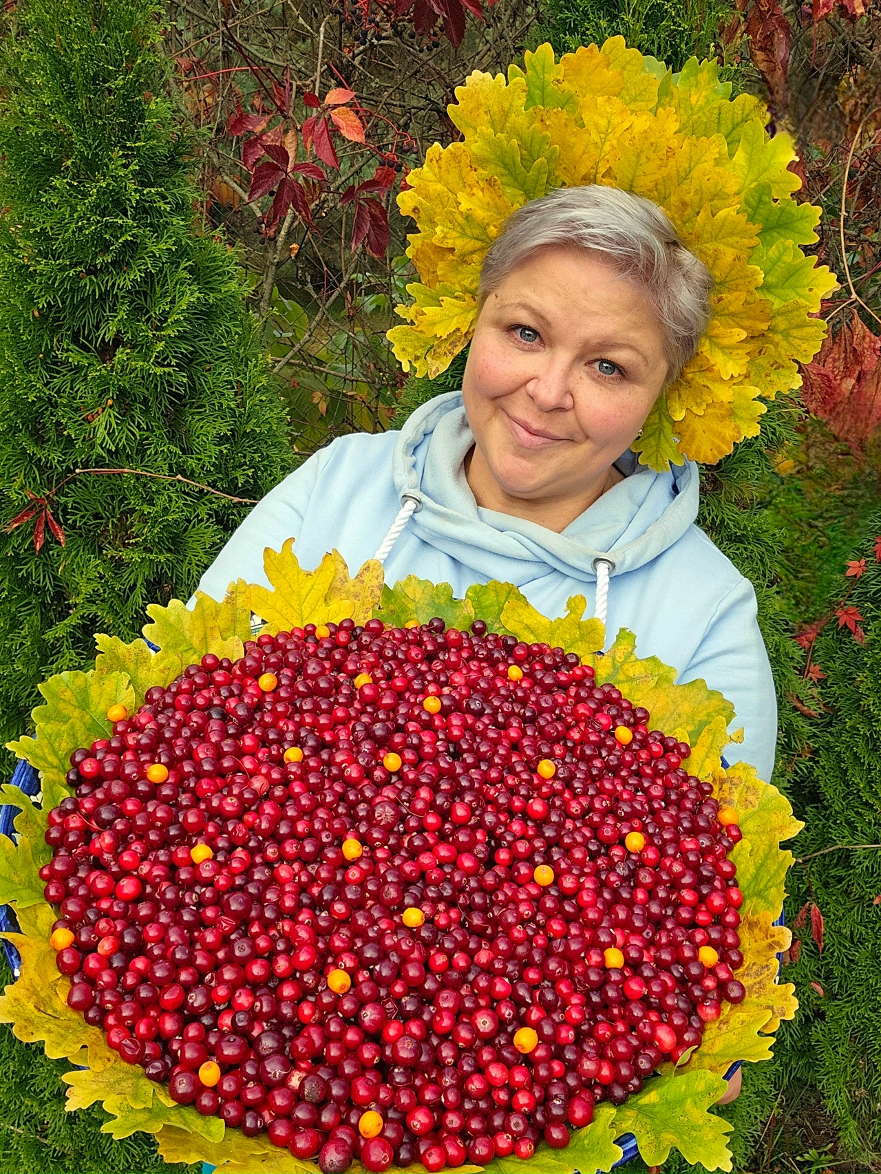 А ещё – это Чудо-женщина, Лесная Фея, Клюквеная фея! Как при этом Анюте удаётся придать дарам осени столь прекрасную букетную форму, осталось за кадром – ведь у волшебниц и фей свои секреты!