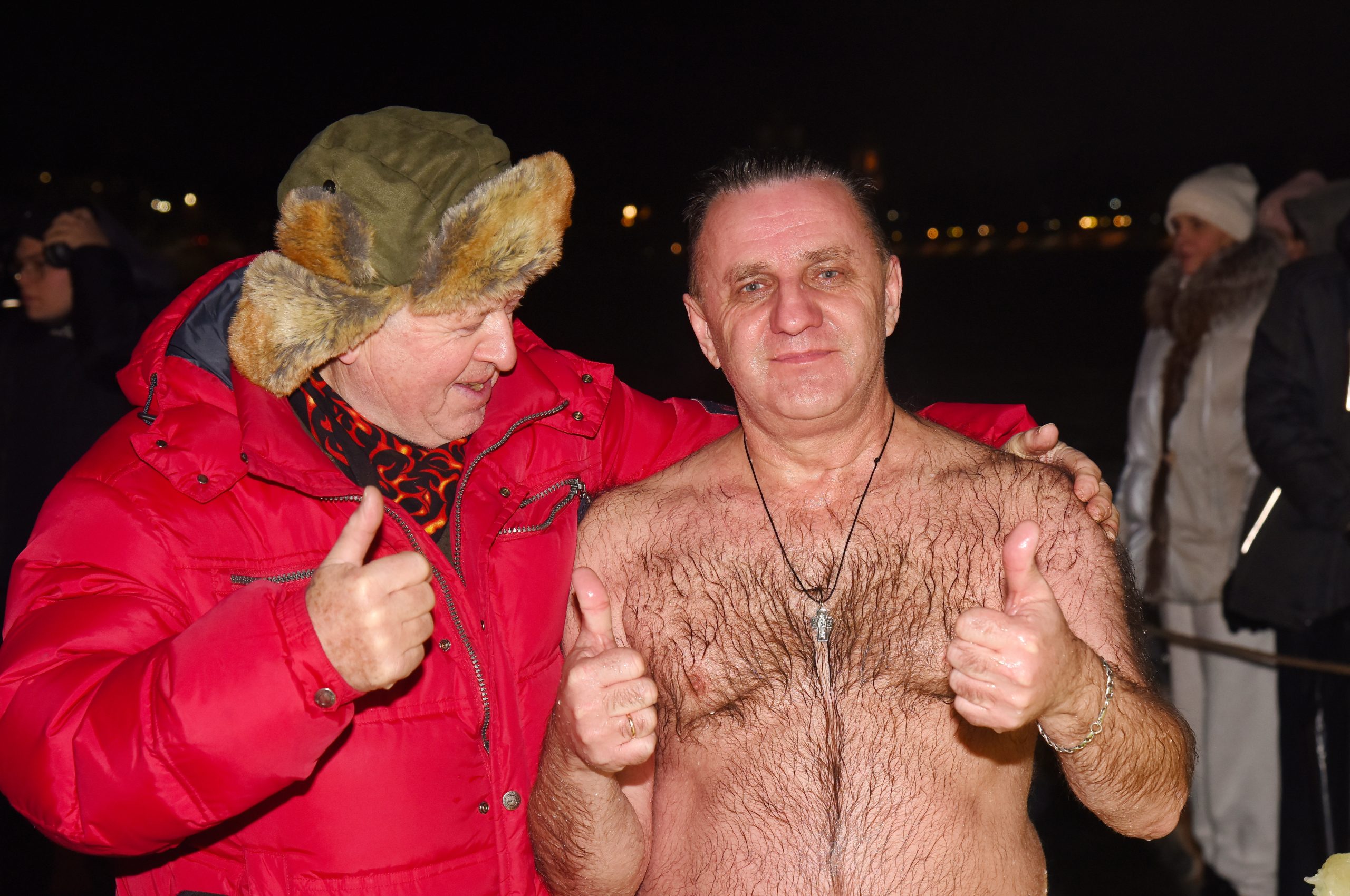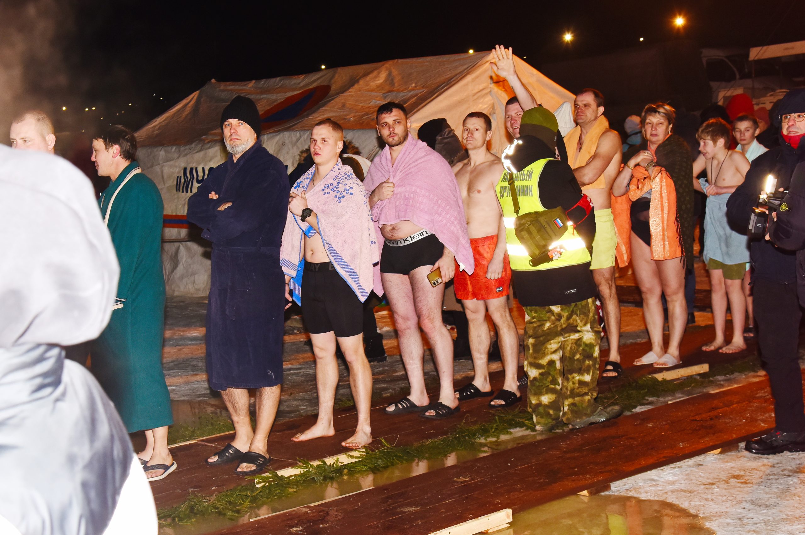 Сперва улыбнулась погода, потом друзья, Геннадий Ильин и Александр Лабанов, которые с ходу заявили, что пойдут к купели (правда, только фотографировать). Но на душе уже стало теплее. Впервые в жизни я забыл о фотоаппарате. Ещё порадовало то, что в воду окунулся и трижды перекрестился практически с ходу. Третьим! После «Деда Мороза» Николая, в колпаке, впервые решившего искупаться и долго не понимающего, почему не пускают, ведь уже 22:03. Вторым оказался бравый, спортивного вида парень по имени Валерий. Зато минут через 15 за нами выстроилась такая очередь, что мурашки по телу пробежали.