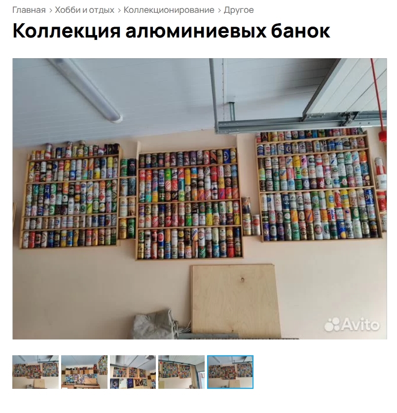 По утверждениям тюменца сборкой банок занимался его дед. Уже покойный мужчина посвятил этому делу более двадцати пяти лет. В настоящее время коллекция располагается в гараже. Многие предпочитают игнорировать предложение, потенциальных покупателей нет. Сам тюменец-продавец называет это, не иначе как, генетической предрасположенностью. По утверждениям продавца по дедовской линии в его семье было много собирателей коллекций.
