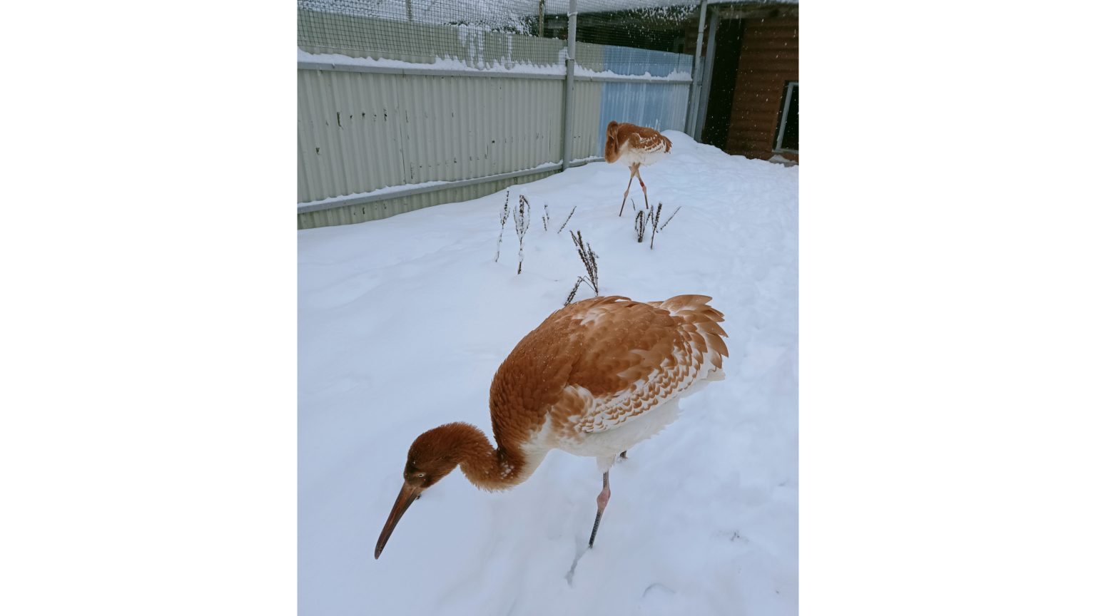 Стерхи-первогодки переживают первую зиму в питомнике Окского заповедника