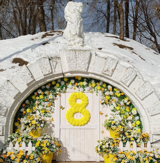 В Лопатинском саду Смоленска к 8 Марта была организована красивая бесплатная фотозона с цветами. Смолянки уже сегодня, 6 марта, могут отправиться в парк и там в «арках со львами» сделать памятные фото. Зона позволяет также делать аккуратные групповые снимки.