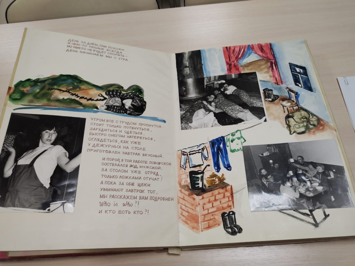 Передо мною фотоотчёт на 14 альбомных разворотов (такие же листовки мы видели в 1981 году, когда искали типографию). Сделано всё с юношеским задором и на позитиве. С первых строк радиозаводчане признавались: «Были часты остановки, // ну да это не беда. // Но не будь физподготовки – //не дойти нам никуда!». Далее – живая картинка, такая же, как у нас в 2019-м, когда мы из Нивок прорывались через опасную Полисть к линии фронта.