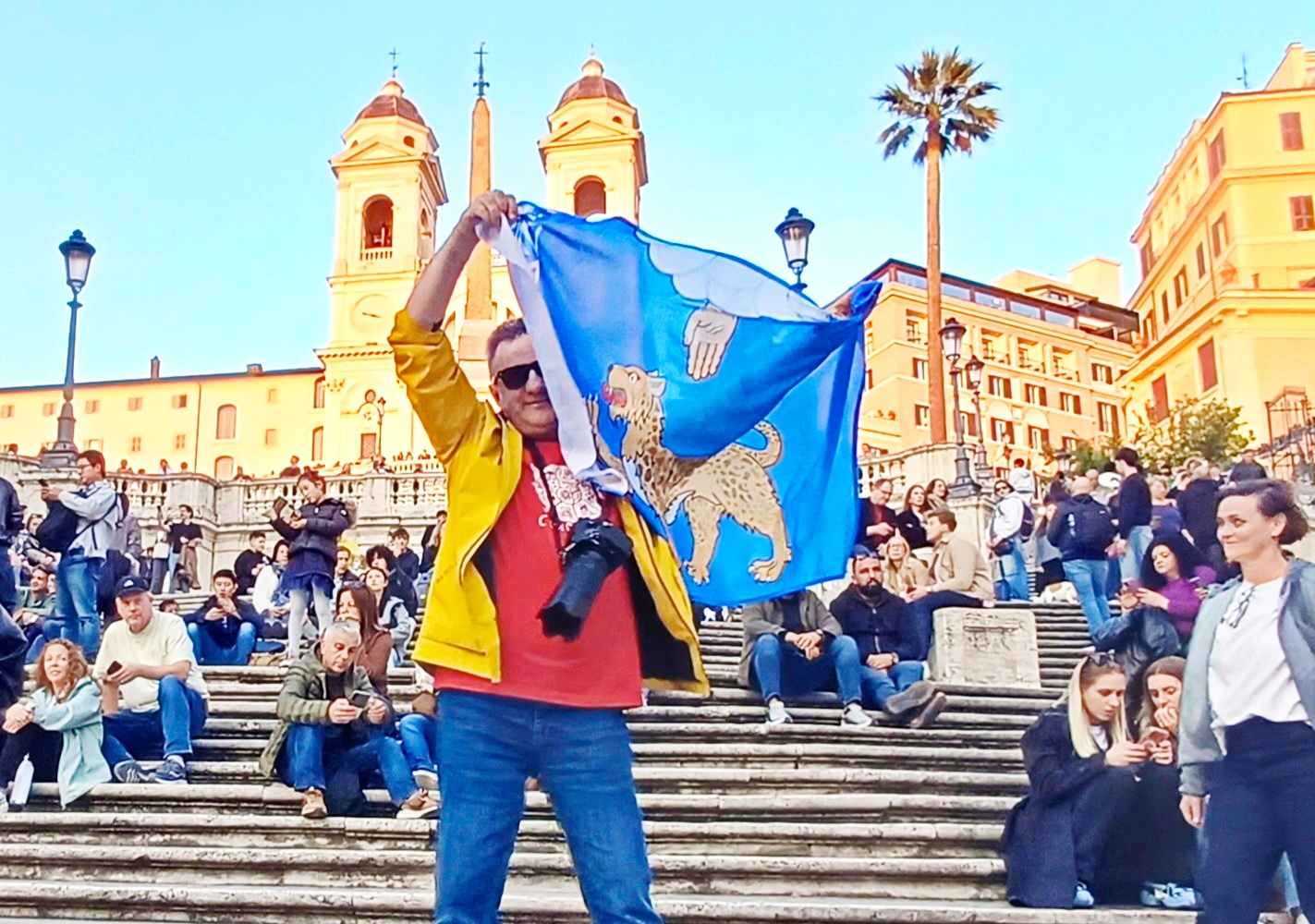 Но самым знаковым актом единения для меня стали фото с псковским флагом на площадях Рима, ведь это главный символ Псковщины (№14, «КрЪ»). И Колизей в этом ряду приятно порадовал и улыбнул.
