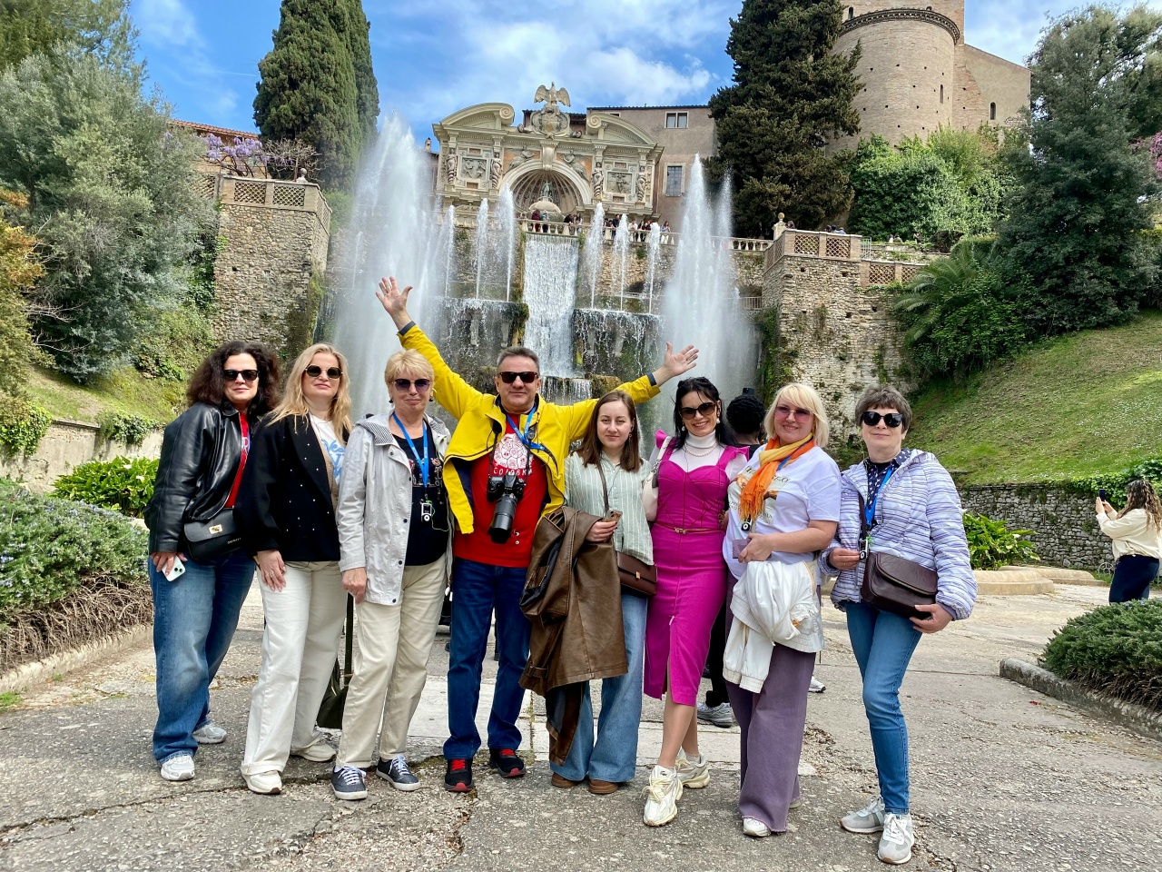 – Не перестаю удивляться, насколько прекрасен и разнообразен мир и творения рук человеческих! Вилла Д’Эсте – шедевр XVI века, эпохи Ренессанса, прототип многих европейских садов и фонтанов (вернее, замысловатых конструкций, когда вода своим движением заставляет фонтан звучать и создавать музыку). Наш любимый Петергоф был построен намного позже, как раз по прототипу Виллы Д’Эсте и Версаля. Творение рук архитектора Пирро Лигорио. Из садов открывается божественный вид на Рим, находящийся на горизонте!