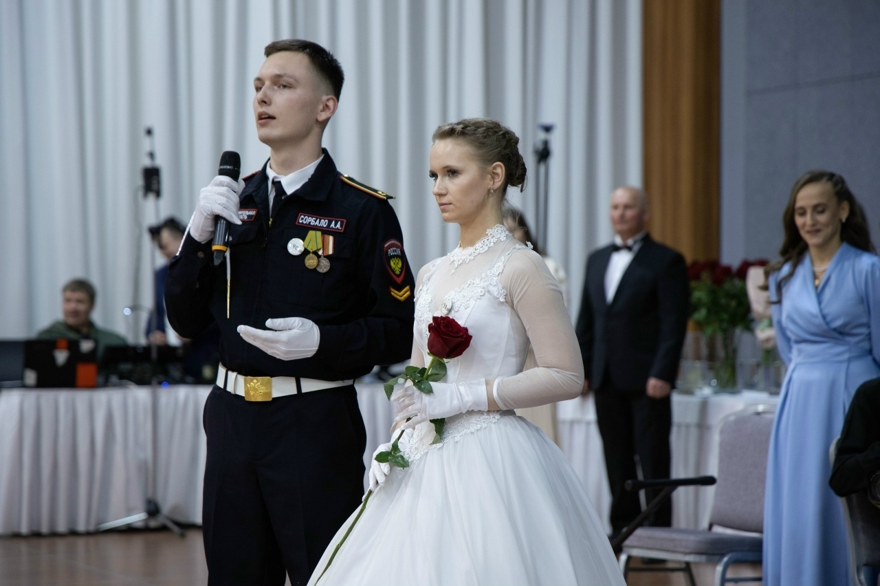 Итак, 23 февраля, Сретенский бал. Уже 3-й в жизни Дианы, и второй – у Арсения. Костюмы свои. В техникуме есть кафедра правоохранительной деятельности, и полицейская форма как нельзя кстати подходила Арсению для бала. Оставалось только купить белые перчатки, ремень, аксельбанты. Грудь украсили медаль «Памяти 191 стрелковой дивизии» и Поискового движения России. На подготовку Арсению хватило две недели, пригодились годы занятий танцами.