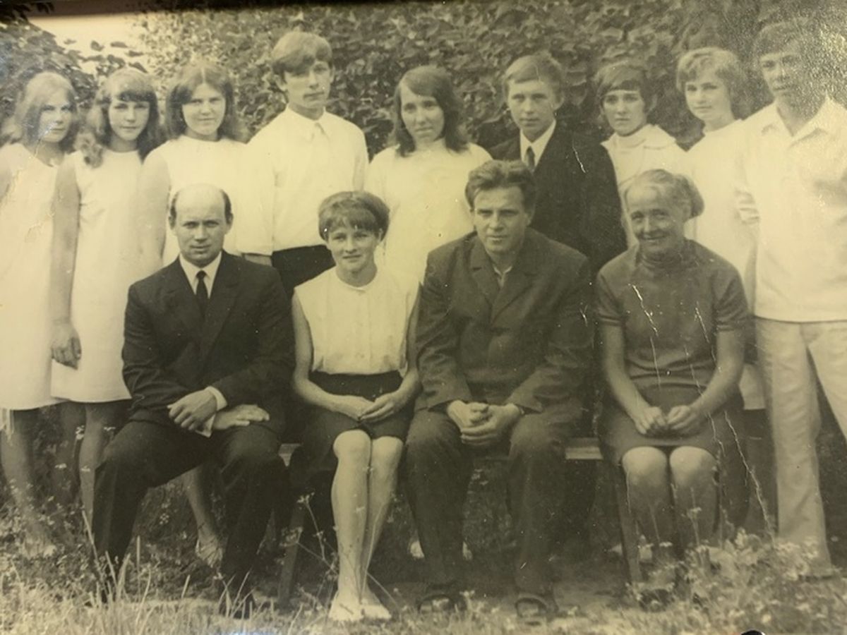 На фото в первом ряду педагогический состав Лёховской школы 1972г.: Калинин Валентин Васильевич, учитель химии (ушел из жизни), Виктор Николаевич Гультяев, директор, Валентина Алексеевна Бордюкова, учитель математики, (живет в д. Лёхово Невельского района), Вера Васильевна Сазонова, учитель биологии.