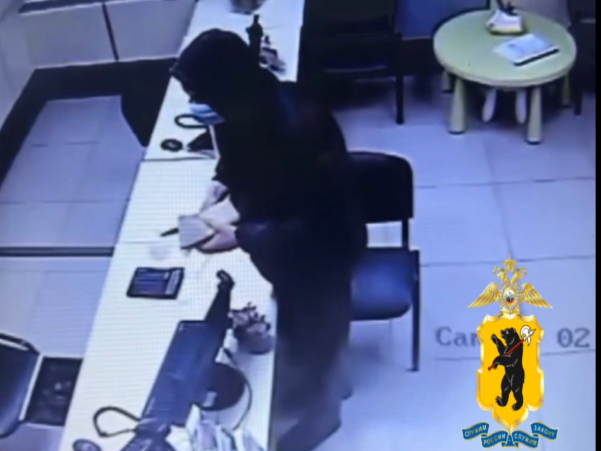 На изображении видно, что в помещение зашел человек в черной куртке, голова которого закрыта капюшоном. Лицо злодея скрывает медицинская маска. Он подходит к столу сотрудницы и достает нож с длинным лезвием, около 20 сантиметров, как можно определить по видео. Нож он направляет в сторону работницы организации. При этом свободная левая рука с напряженными растопыренными пальцами опущена вниз. По словам специалистов, положение левой ладони говорит о нервном состоянии посетителя. Через 11 секунд незнакомец, забрав со стола файл с бумагами левой рукой, разворачивается и покидает помещение.