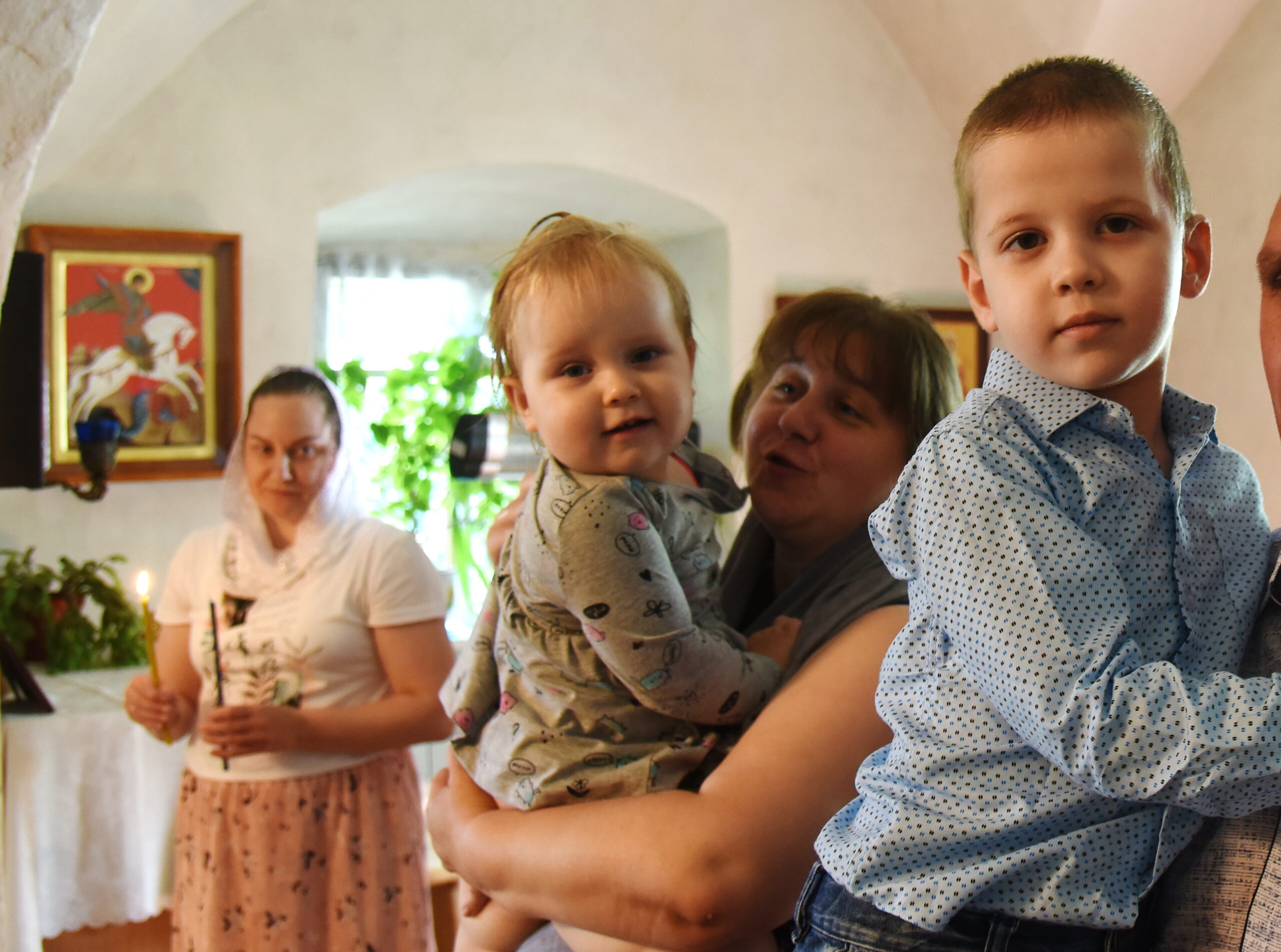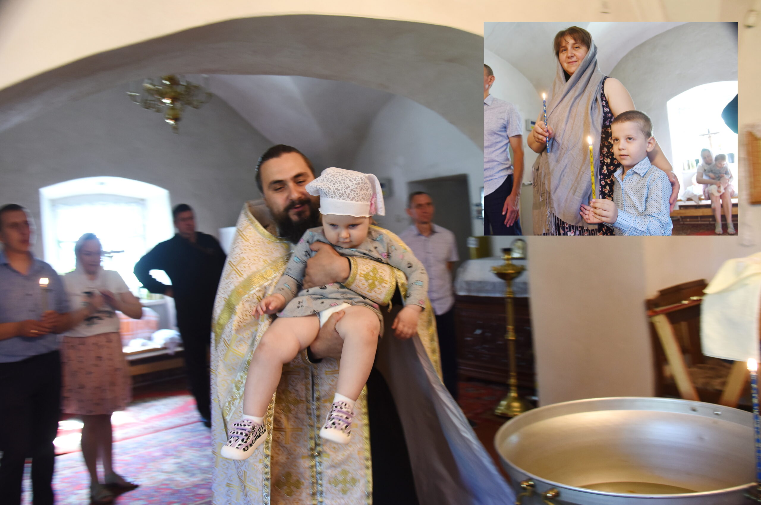 Я очень боялась этих крестин, всё как-то не выходило, ведь и меня в своё время крестили вместе с бабушкой, – призналась Светлана ЛАБАНОВА, супруга активного участника курьеровских патриотических десантов Александра ЛАБАНОВА. –  Вот и здесь уже собралась поехать на малую родину в Луганск, да и муж подруги Анны Олег  (крестившийся в 18 лет!) хотел везти их пятилетнего сынишку Егора в Хакассию. А получилось всё легко, тепло, по-домашнему. Наша Настенька, как увидела батюшку Льва, сразу плакать перестала, такое ощущение, что на одном языке говорили. А вот Георгий, наоборот, как маленький мужчинка, возмужал, не пропускал ни одного слова из Символа веры.