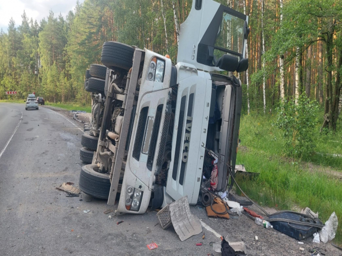 Известно, что 36-летний житель Владимирской области ехао за рулем на грузовике «Ивеко Стралис» с полуприцепом. И он совершил съезд с дороги с последующим опрокидыванием.