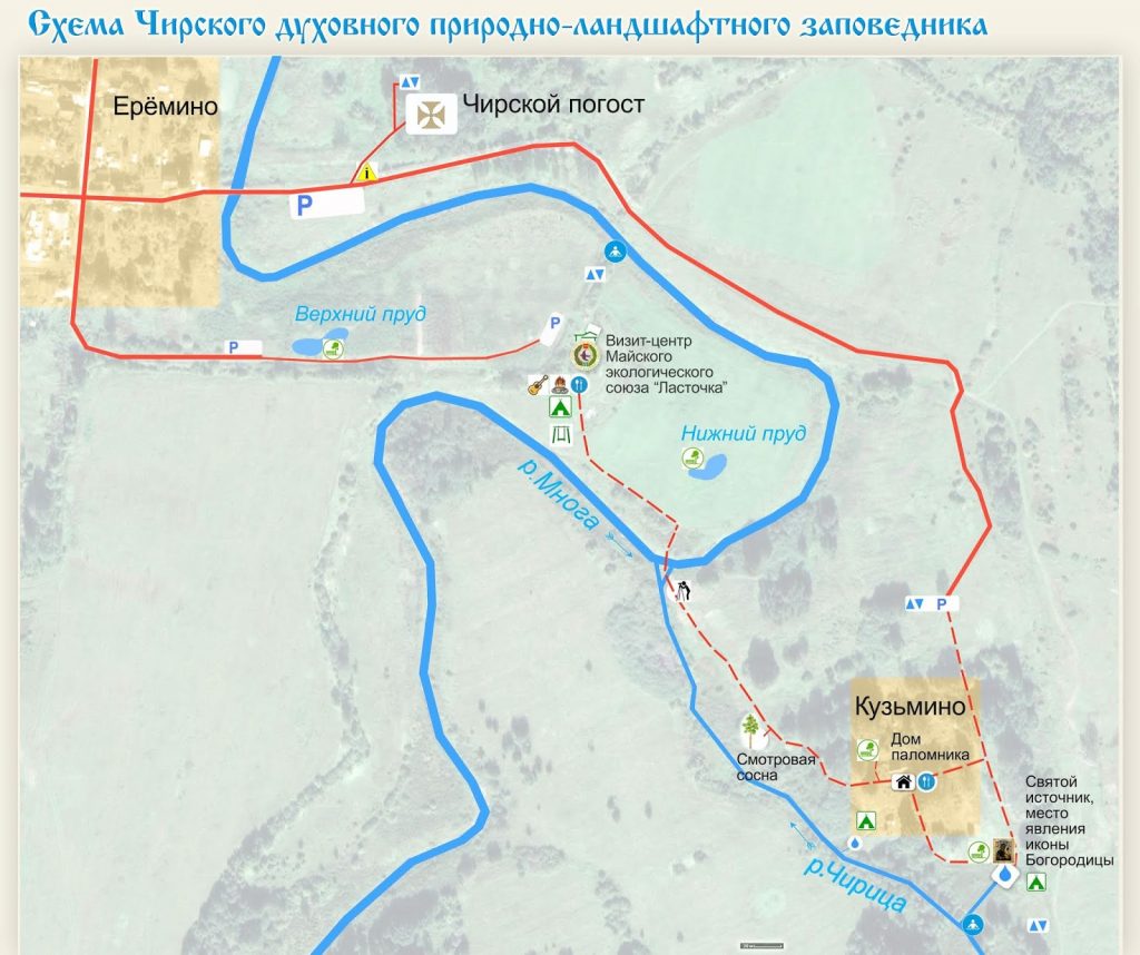 До революции у источника стояла Чирская часовня, куда на военных учениях 1903 года приезжал Царь-мученик Николай II с императрицей. Были они в гостях у подвижницы Елизаветы ВАГАНОВОЙ, создательницы «Майского союза» для крестьянских деток. На погосте до Великой Отечественной войны, у Ерёмино и Кузьмино, стояла церковь Рождества Христова, в 1943 году фашисты её взорвали – рядом была линия «Пантера»! Казалось бы, святыни на Руси уничтожены. Ан, нет!
