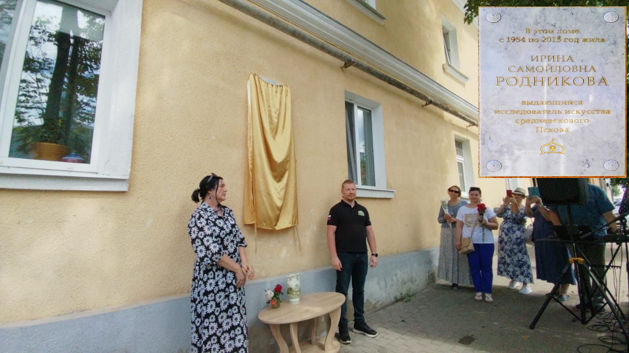 ОТ автора: накануне художник Юрий ЯШИН закончил работы над мраморной доской, посвящённой известному псковскому искусствоведу, автору исследований, в том числе по иконе Чирской Богородицы, Ирине РОДНИКОВОЙ. Вчера, 24 июня, у храма Успения с Полонища (вблизи бывшего Знаменского монастыря с Поля) прошло открытие Памятной доски. И это, на мой взгляд, не просто неслучайная случайность, а благодарность ещё одной чирской подвижнице от святого места.