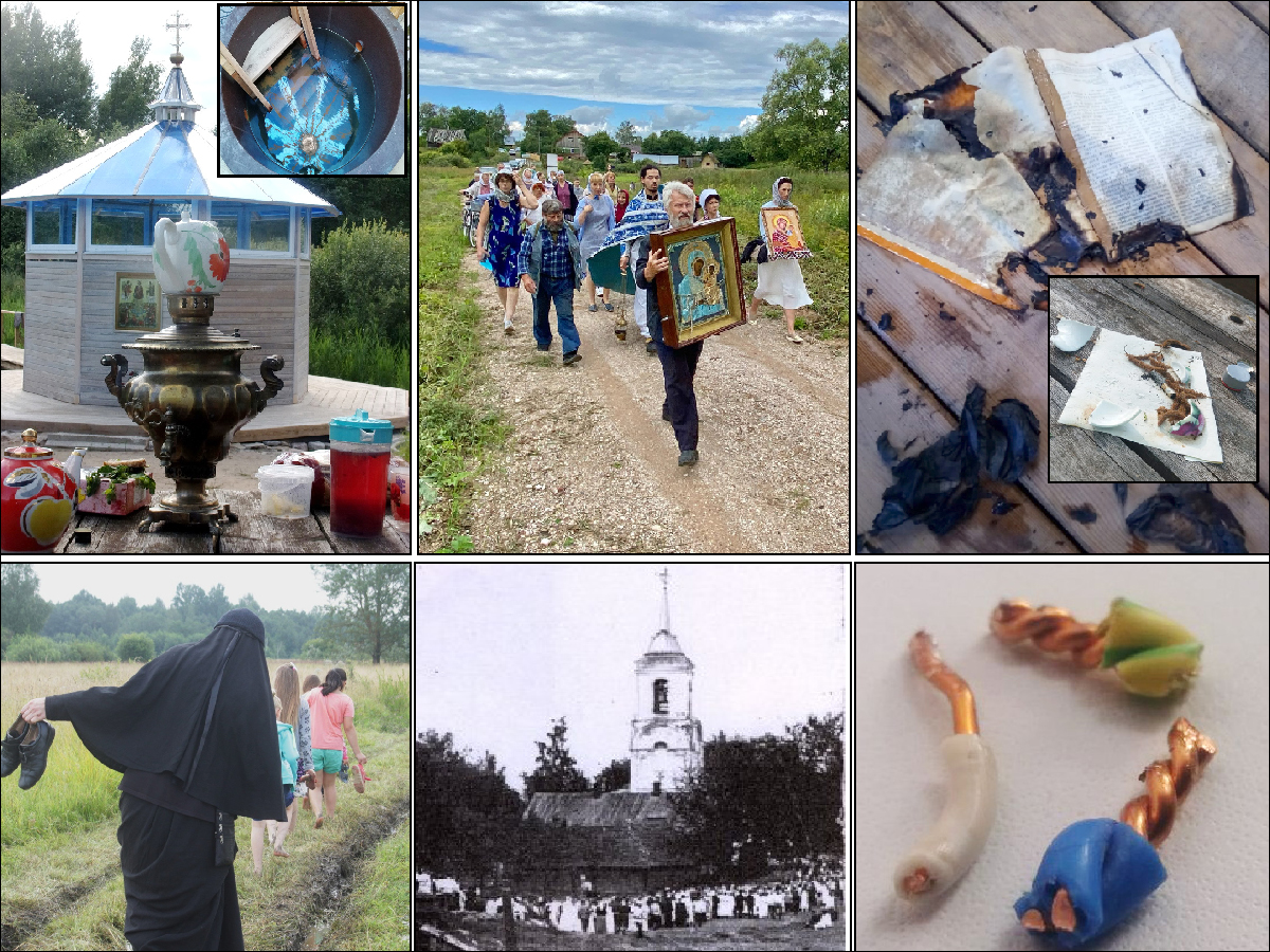 Озвученные мною факты ещё и об осквернении святыни заинтересовали следователей и будут рассмотрены после публикации в газете «КрЪ». Уже у местных жителей я узнал, что рецидивиста-форточника зовут Вадим, родом он из деревни Воронино, маленького роста, что и определило способ кражи. По «тюрьмам и ссылкам» путешествует с 1999 года. На следующий день, после его огненных плясок у святого источника, своровал металл в соседнем Вадрино.