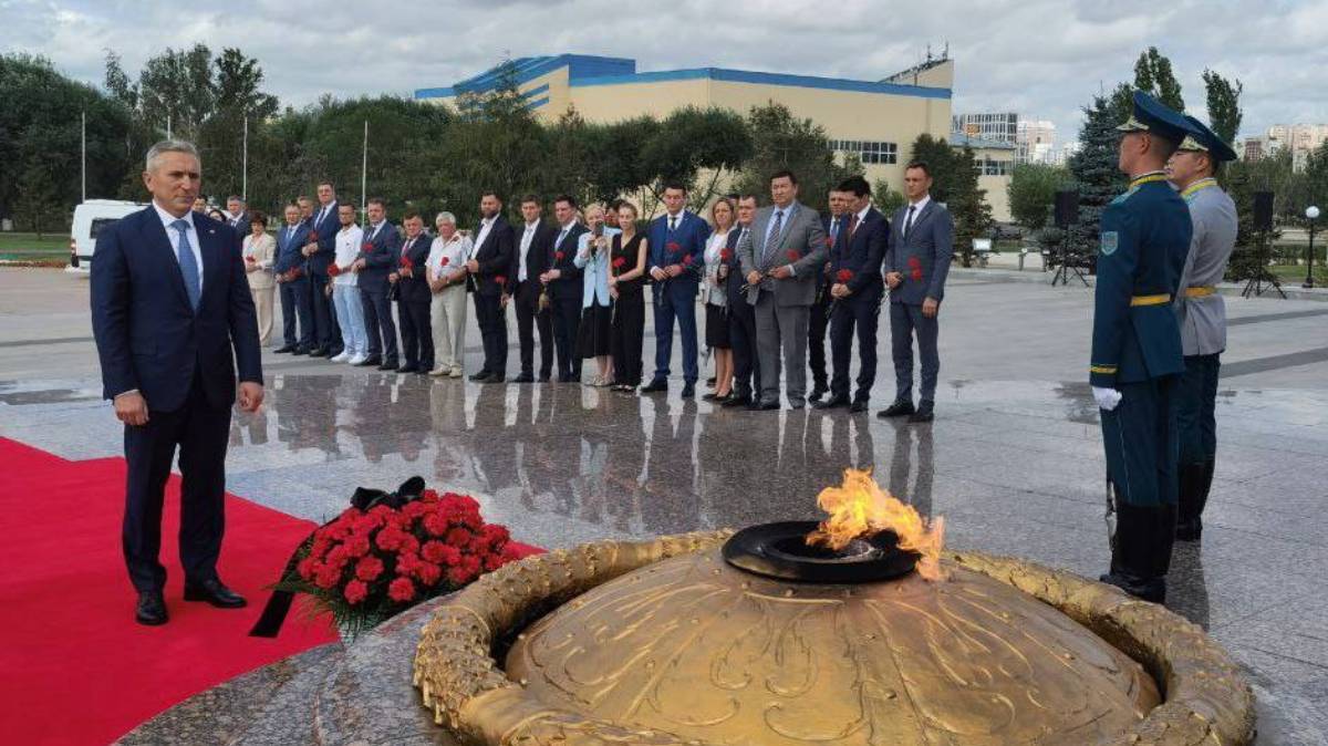 По данным информационного центра правительства Тюменской области в начале своего рабочего визита в Казахстан губернатором Тюменской области Александром Моором был осуществлён процесс по возложению в Астане к Монументу защитников Отечества  цветов.