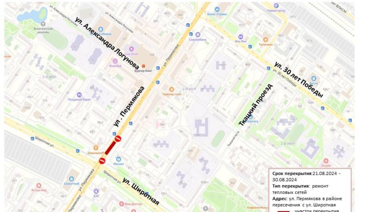 Пресс-служба администрации Тюмени информирует о том, что в Тюмени в период с 21 по 30 августа для движения автотранспорта будет временно закрыт участок улицы Пермякова в районе пересечения с улицей Широтной. Причиной для ввода ограничений является проведение ремонтных работ на участке тепловой сети.