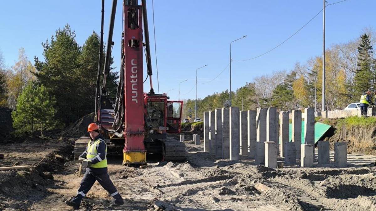 Главное управление строительства Тюменской области информирует о том, что в Тюмени строительство новой развязки на Московском тракте началось с возведения павильона пешеходного перехода. В настоящее время в основание павильона и лестничного марша надземного пешеходного перехода забито три десятка свай.