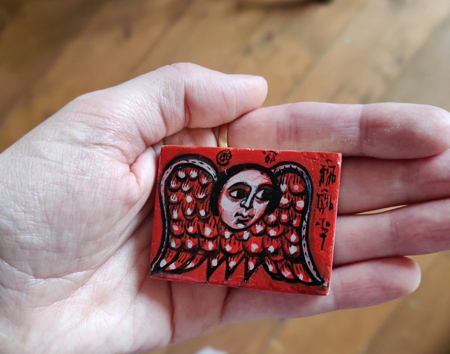 – И кто-то умный мне тогда посоветовал рисовать дома, а днём лепить на стены готовые картинки. Я накупила фанерок, сделала небольшие иконки и расклеила их по Пскову. Потом появились глиняные ангелочки.