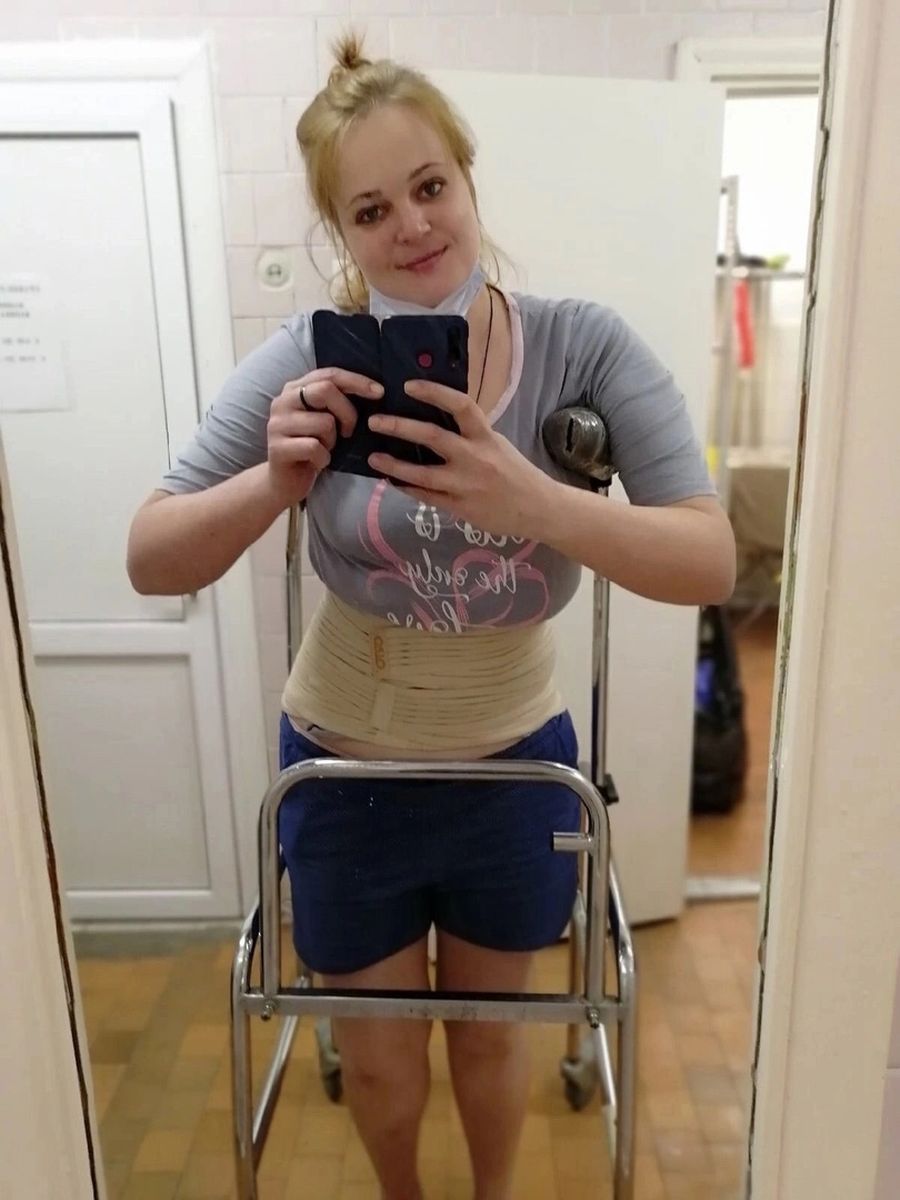 – Это было то самое отделение, где лежал муж, и врачи меня узнали! Я встала на ноги после операции, при этом почувствовала адскую боль, – вспоминает тот ужас Маша. – Неделю меня глушили обезболивающими, таскала ноги на ходунках, как пьяная. Снова прооперировали, а там – гной! Наживую мне позвоночник полоскали, дренажи поставили. За ту неделю вся жизнь промелькнула несколько раз – так было больно! На дворе ковид, маму не пускают. «Ребёнок, держись!» – просила меня мамочка через окно, и я держалась. Плечи и верх у меня ушли вправо, а таз с ногами – влево. Сделали ещё две операции, а в феврале – пятую. Удалили два позвонка и поставили импланты, я ощущала их, как гири. Приноровилась мыться со швами и в корсете. Спасибо единственному человеку – тренеру ЛФК, Александру, который сильно меня поддержал в те дни.
