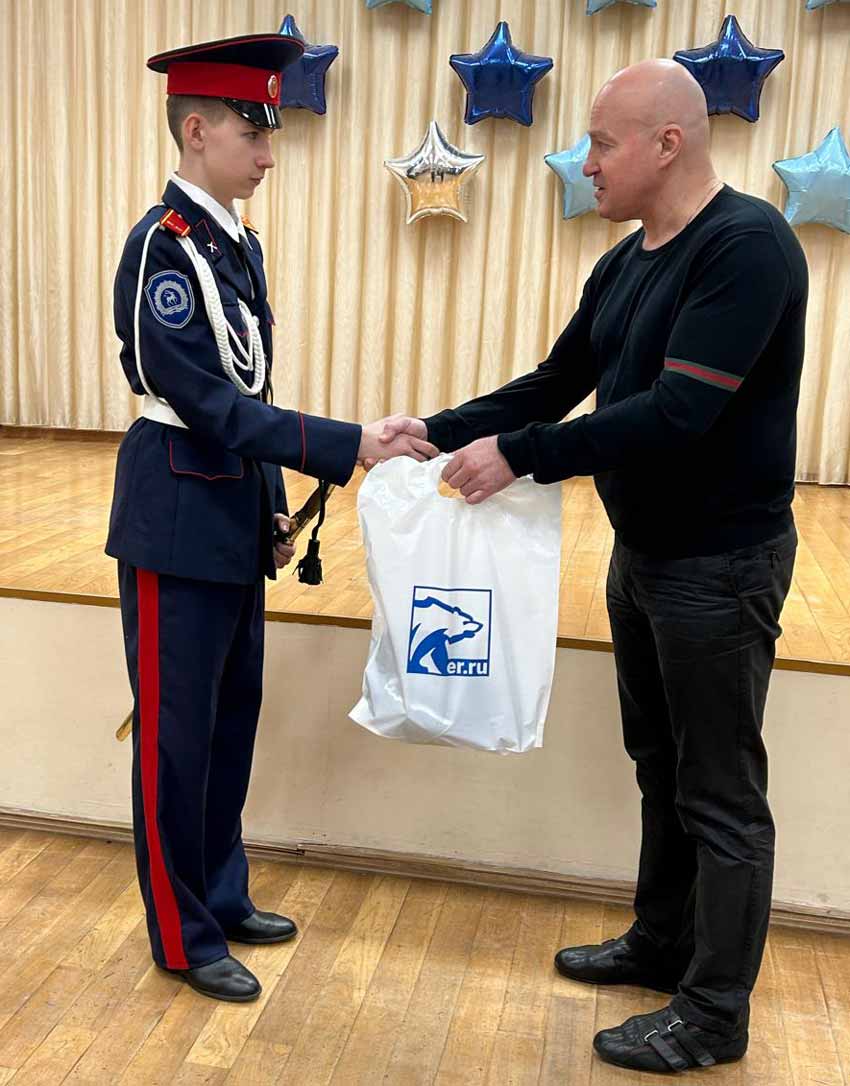 В своем выступлении Евгений Иванов сказал: «Особое место в возрождении и сохранении традиций донского казачества принадлежит казачьим классам. Вы, ребята, пример не только для своих сверстников, но и для ребят младшего возраста, учеников других школ. Желаю ему успехов и новых побед!»