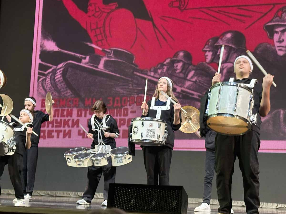 На гала-концерте выступили четыре уникальных сводных коллектива: баянистов-аккордеонистов, барабанщиков, духовиков и хористов. Одну из песен хора «Спасибо за Победу!» сопровождал виртуальный «Бессмертный полк» – перед глазами зрителей прошли портреты фронтовиков, дедов и прадедов участников фестиваля.