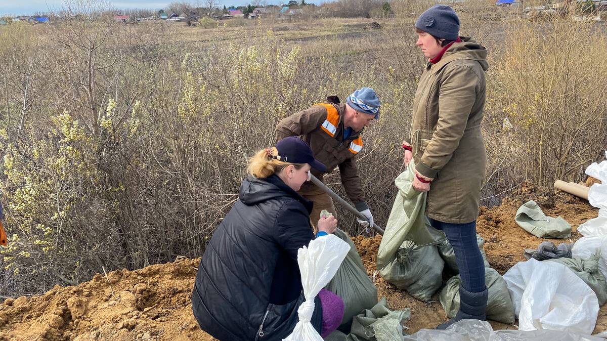Многодетные родители укрепляют ишимскую дамбу