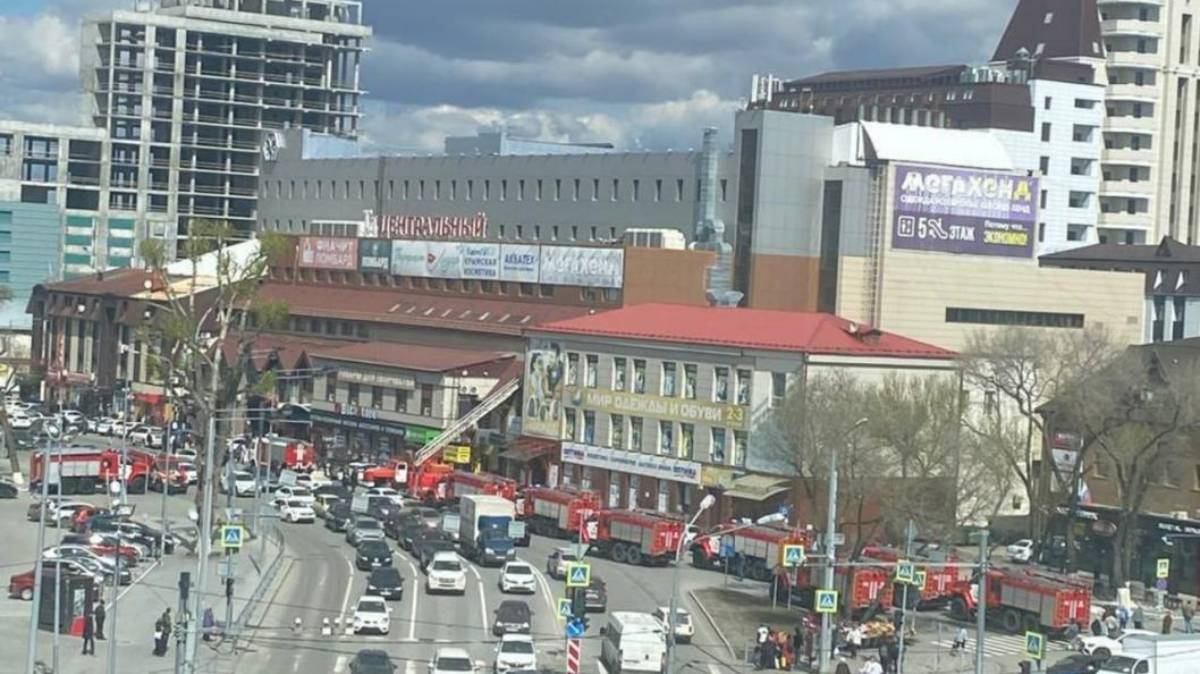 Сегодня возле торгово-развлекательного центра «Центральный» очевидцами было замечено скопление большого количества спецтехники. Очевидцы произошедшего утверждают, что к территории торгово-развлекательного центра «Центральный» было доставлено около десяти пожарных машин. В здание сотрудники пожарной службы поднимались по лестнице.