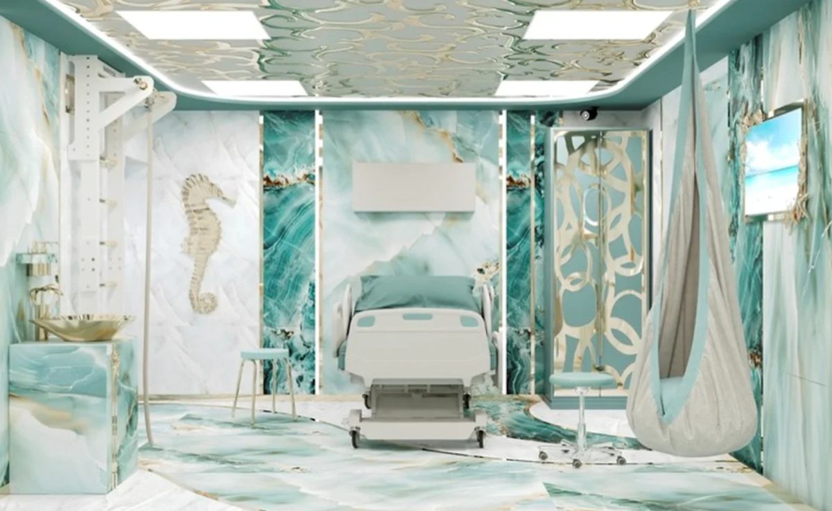 «Это лес, античный дворец, море, сады. Женщина приезжает в родильный дом, ей задают вопрос: где она хочет рожать? Если это лес, то там не только лес в дизайне, там и пахнет лесом, там звуки леса, там все сделано для партнера: мужа, подруги, мамы женщины. Мы очень приветствуем партнерские роды, они позитивно влияют на процесс родов»,— добавила Татьяна Савинова.