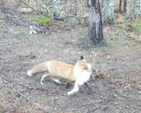 Фотоловушка запечатлела лисицы с добычей в зубах в Окском заповеднике